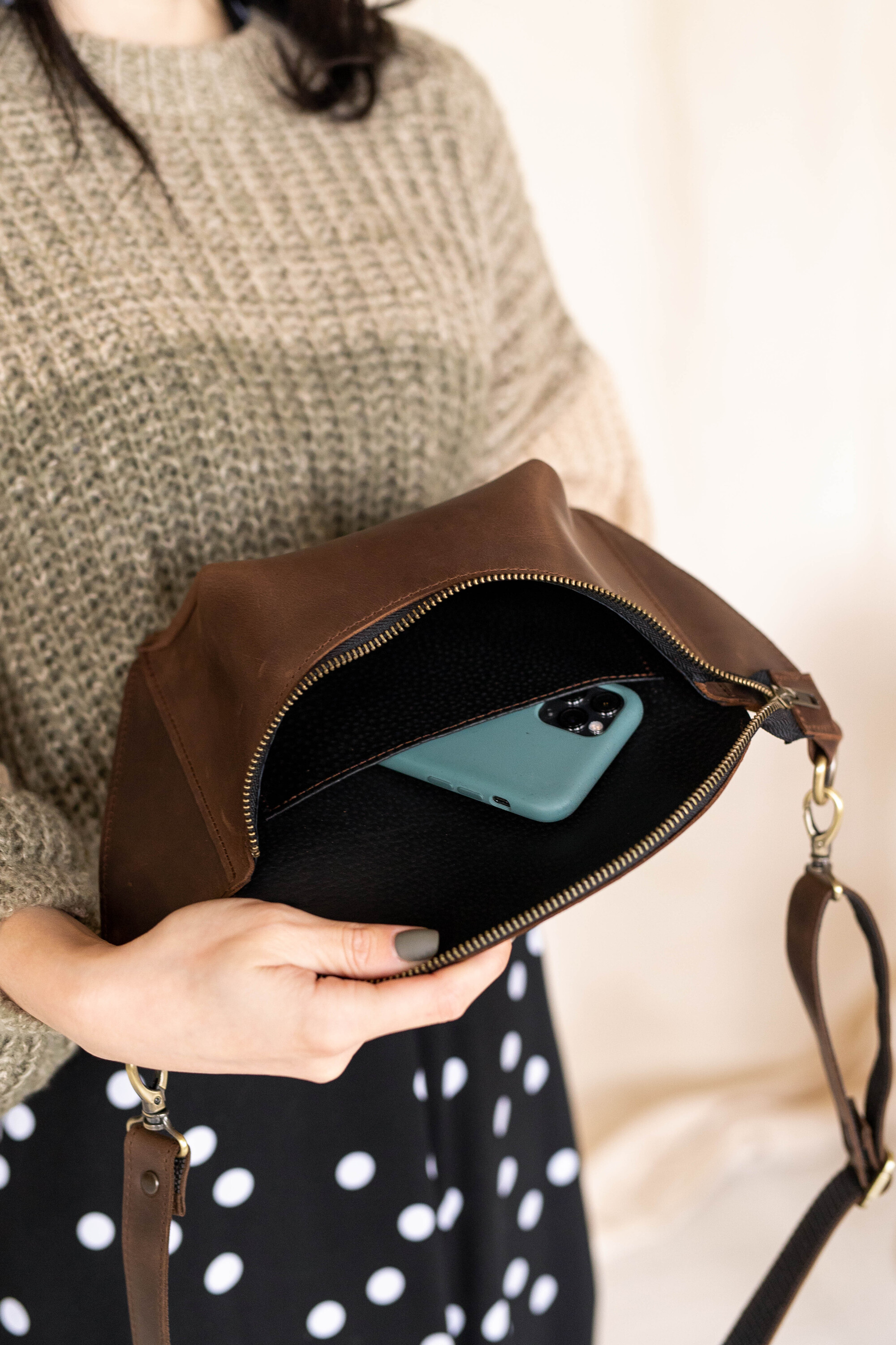 CAELI to połączenie lekkości i subtelności, zamknięte w nowoczesnej formie. Wykonana z wysokiej jakości skóry naturalnej, jest jednocześnie wygodna i praktyczna. Wyprofilowana tak, by komfortowo przylegać do ciała — bez względu na to, czy nosisz ją na biodrach, przez ramię czy po skosie. Jej minimalistyczny fason sprawia, że doskonale komponuje się z wieloma stylizacjami — od codziennych, casualowych po bardziej miejskie.