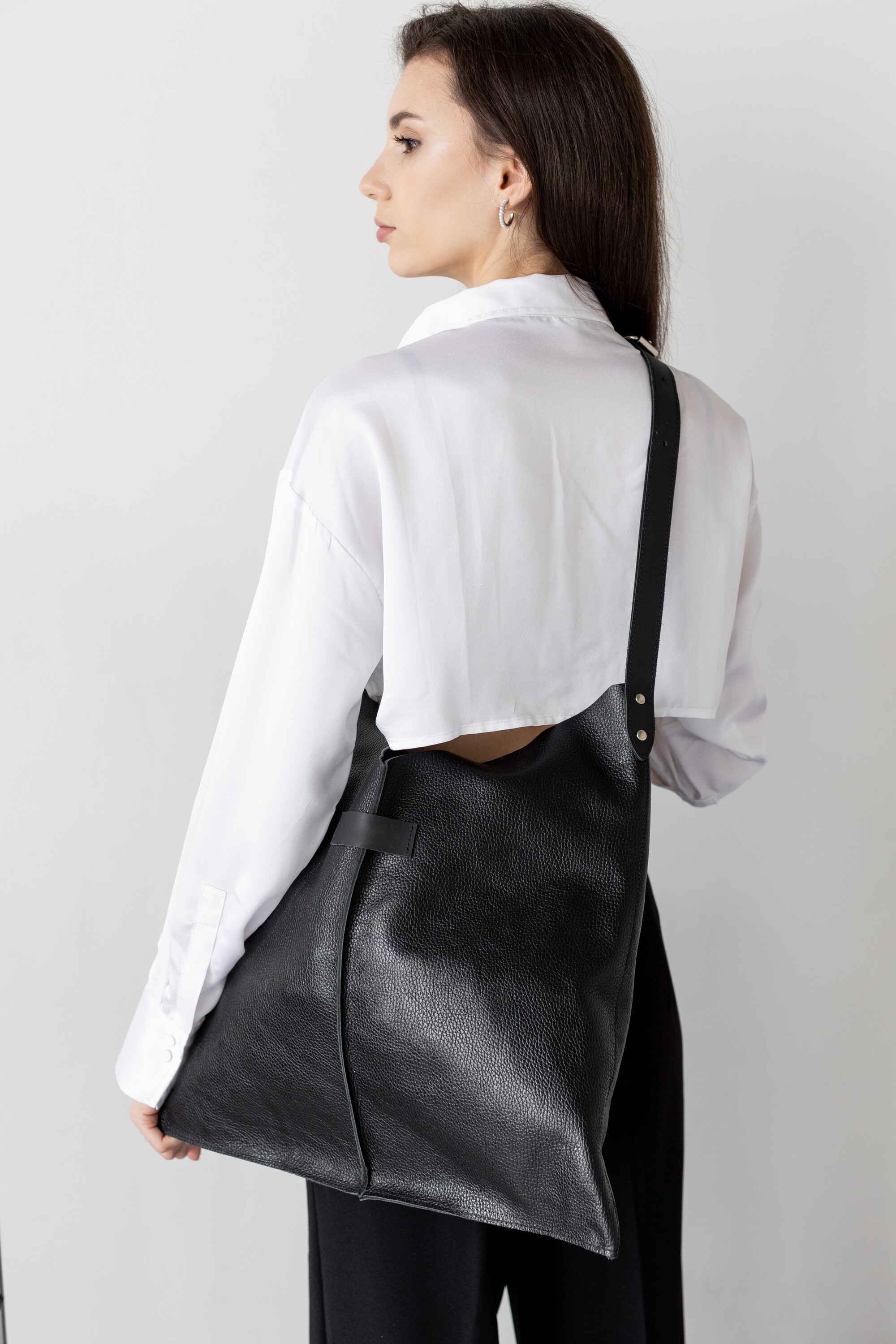 Torebka skórzana duża na ramię czarna