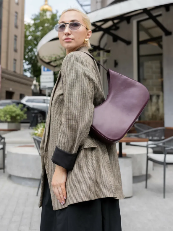 Torebka skórzana na ramię bagietka bordowa